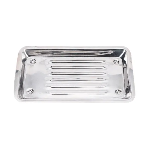 Bandeja metálica nacional Material: Acero inoxidable Medidas: 13,3 cm de ancho Contiene: 1 bandeja