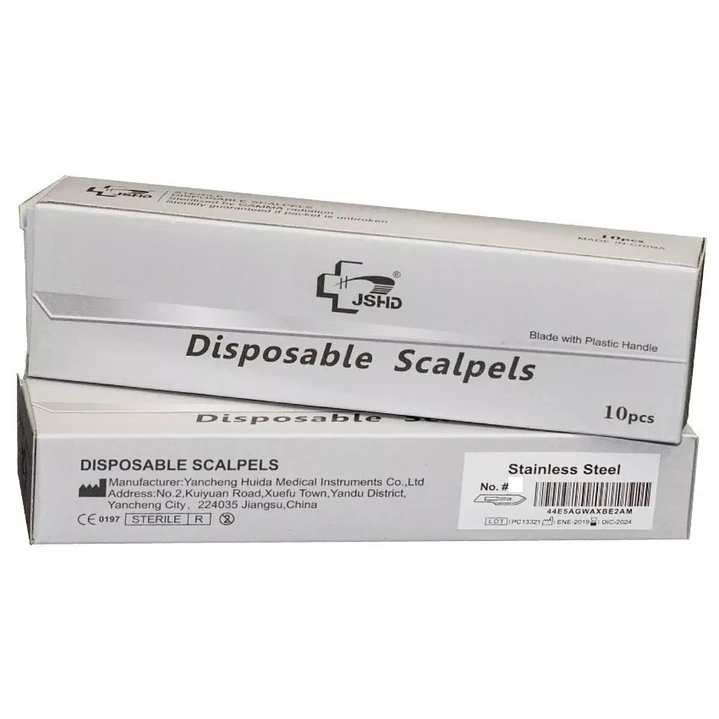 Bisturí Desechable con Mango JSHD – Caja x 10 unidades – Acero Inoxidable